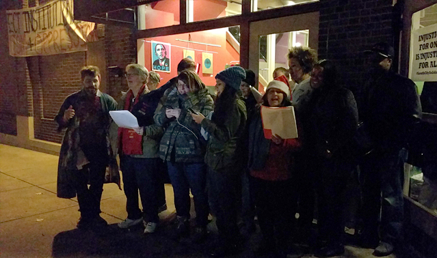 In the video clip above you will hear protesters singing their version of the holiday classic “Silver Bells.”