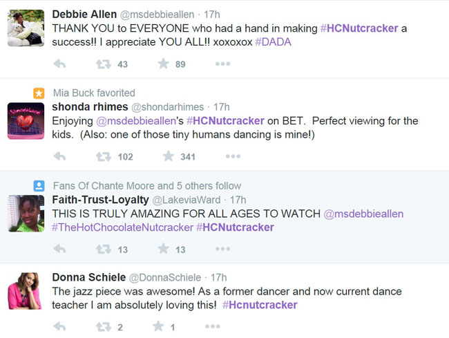 I watched Debbie Allen’s Hot Chocolate Nutcracker on BET Sunday night, of which she was writer and director, and thoroughly enjoyed it! As a dancer and dance teacher this was right down my alley. The dancing, the choreography, the story-line, the costumes, it was all just awesome! She found a way to make the Nutcracker multicultural and highly entertaining. One of my friends even stated how he doesn’t like ballet and dance performances that much, but he got into the production Sunday night. Black Twitter users seemed to approve as well.